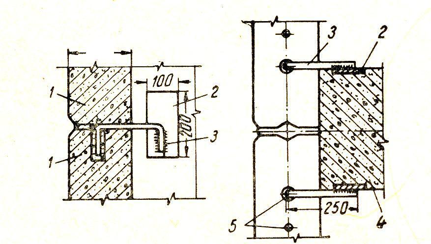 При установке смежных и примыкающих под углом панелей образующийся узел закрепляют различными способами: сваркой закладных элементов, укладкой в стыки скоб, которые стягивают заложенные в панели петли.