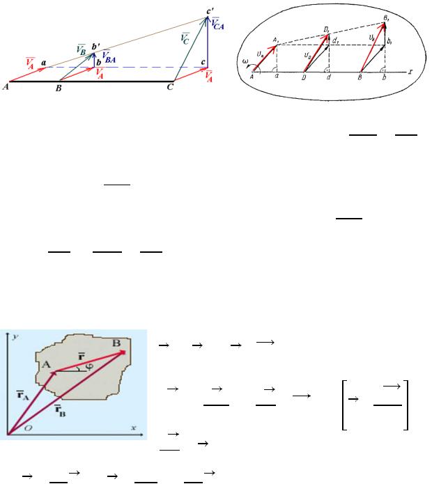 Теорема: «Концы векторов скоростей точек неизменяемого отрезка твердого тела при плоском движении лежат на одной прямой и делят ее на отрезки пропорциональные расстояниям между точками.»