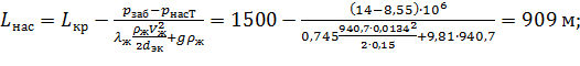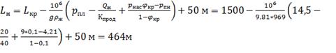 Цель расчета глубины подвески насоса заключается в обеспечении межремонтного периода его работы соизмеримого с периодом ремонтных работ в скважине, обусловленных значительным снижением её продуктивности за счет кольматации призабойной зоны пласта асфальтосмолопарафиновыми отложениями или накоплением песчаной пробки. Межремонтный период работы установки УЭДН-5 должен быть соизмерим с таковым при эксплуатации скважины установками УСШН и УЭЦН в аналогичных геолого-промысловых условиях.