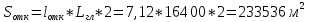 Площадь укрепления откосов: