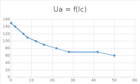 Вольт-амперная характеристика Ua.= f(Iа) участка катод-анод при Ic = 5 мкА