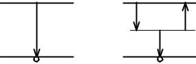 Удомішкових НП існують й інші види рекомбінації. На рис. 1.6 б показано принцип рекомбінації за допомогою локального рівня. У забороненій зоні можуть з’являтися локальні енергетичні рівні, утворені домішковими атомами та різноманітними дефектами кристалічної ґратки. На локальний рівень із ЗП може переходити електрон, заповнюючи його. Згодом електрон може або повернутися