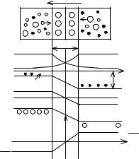 Накопичення об’ємних нерухомих зарядів у p-n переході приводить до виникнення в ньому дифузійного електричного поля Eäèô (рис. 1.9 а), яке має напрям,