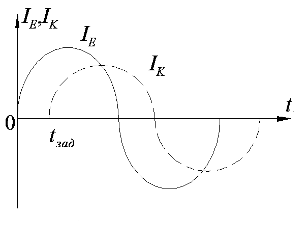 відставатиме від струму емітера