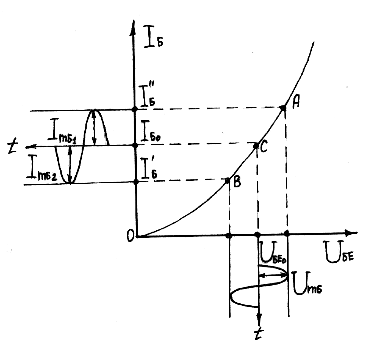 Рисунок 3.52 – До графоаналітичного визначення параметрів режиму підсилення транзисторного каскаду