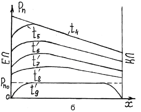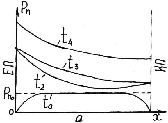 і концентрація дірок у базі біля ЕП