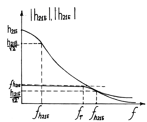 З останніх формул випливає, що частотні властивості БТ у схемі зі спільним емітером значно гірші, ніж у схемі зі спільною базою. Для порівняння на рисунку 3.55 зображено частотні характеристики обох схем увімкнення.