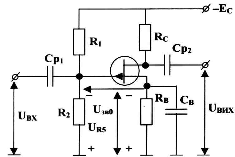 Найпростіша схема підсилювального каскаду на ПТКП зображена на рисунку 4.19 а.