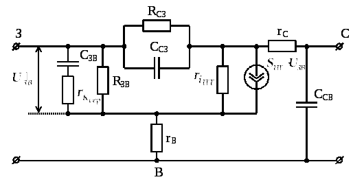 Для аналізу поведінки польових транзисторів на різних частотах використовують еквівалентну схему рис. 4.22.
