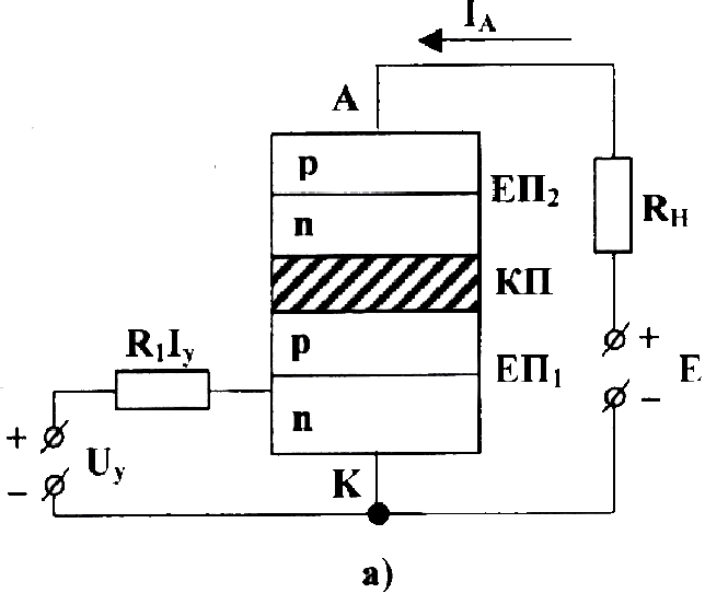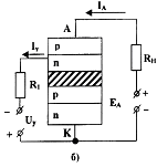 Керувальний електрод може з’єднуватися з будь-якою базою тиристора (рис. 5.5 а, б).