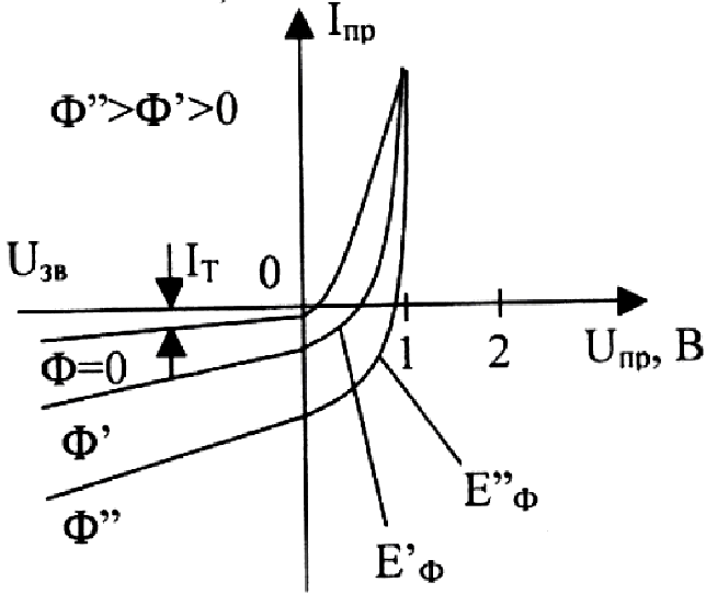 на ВАХ рис. 6.8 залежно від інтенсивності