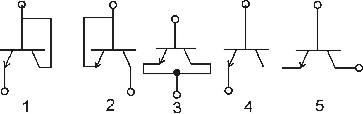 Замість діодів застосовуються біполярні транзистори у діодному вмиканні. Існує п'ять варіантів такого вмикання.