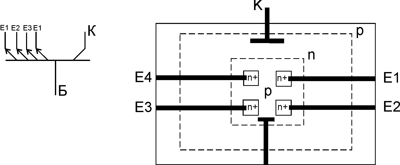 Рисунок 7.13 – Багатоемітерний транзистор