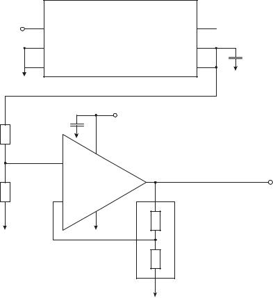 Значение измерительного тока должно быть таким, чтобы самонагрев не приводил к выходу параметров ТС за пределы допуска. Повышение его сопротивления, обусловленное самонагревом, не должно превышать 20 % допуска. Цепи постоянного тока для ТС с номинальным сопротивлением 100 Ом рекомендуется возбуждать измерительным током 1 мА или менее. Для того чтобы минимизировать влияние этого эффекта, необходимо выбирать опорный резистор с высоким значением номинального сопротивления и/или источник с меньшим значением напряжения питания. Несмотря на то, что это приведет к падению чувствительности схемы, применение ТС с относительно высоким температурным коэффициентом сопротивления и современной элементной базы для нормирования сигналов позволяет скомпенсировать этот недостаток. На рис. 4.8 приведен пример практической реализации схемы на основе делителя напряжения с использованием стабилизированного источника опорного напряжения.