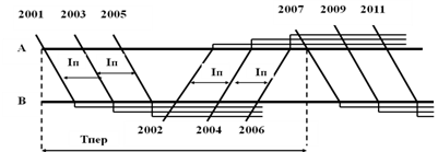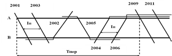 При парном пакет графике при одинак кол-ве поездов пролож-ых в одном пакете опред-ся в парах поездов