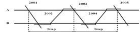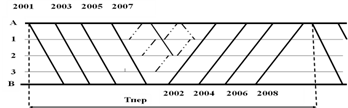 3)Парный непакетный график (поезда поступают сходу на ограничивающий перегон)