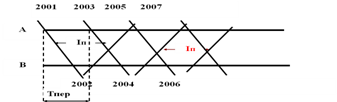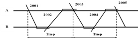 4)Парный непакетный график (поезда выходят сходу с ограничивающего перегона)