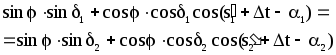 tenglamadan soat tuzatmasi topiladi. Agar soat burchagini topish tenglamalaridan ikkita bir xil balandlikdagi (ya’ni z1=z2) yoritgichlar uchun tuzilsa, u xolda cosz1=cosz2 ligidan