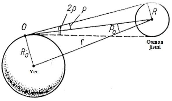 Quyosh sistemasiga kiruvchi osmon jismlari, yulduzlardan farq qilib, juda kichik bo‘lsada. Ma’lum burchak ostida ko‘rinadi. Shuning uchun ham ulargacha masofa aniq bo‘lganda, ularning chiziqli o‘lchamlarini hisoblash qiyinchilik tug‘dirmaydi.