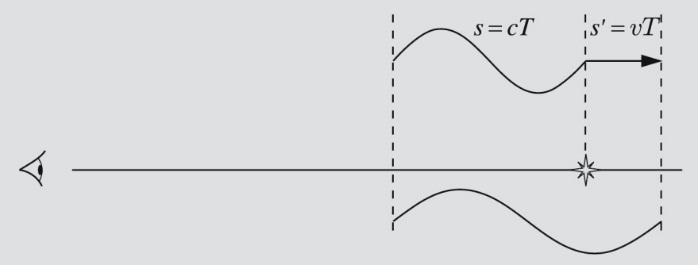 tarqalish tezligi. Shu vaqt ichida manba kuzatuvchiga nisbatan