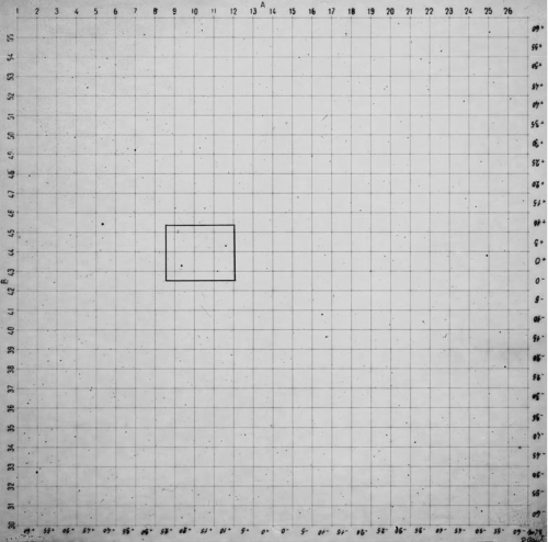 Yulduzlarning koordinatalari fotografik plastinkalarda (2.14-rasm) yoki CCD tasvirlarda koordinatasi oldindan ma'lum bo'lgan tayanch yulduzlarga nisbatan aniqlanadi.