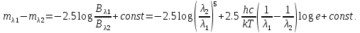 formulani beradi, bu erda konstanta yulduz kattaliklari shkalasidagi turli nol punktlari mavjudligining oыibatidir. Agarda harorat unchalik katta bo‘lmasa, unda biz spektrning optik qismi uchun Vin approksimatsiyasini ishlatishimiz mumkin bo‘ladi: