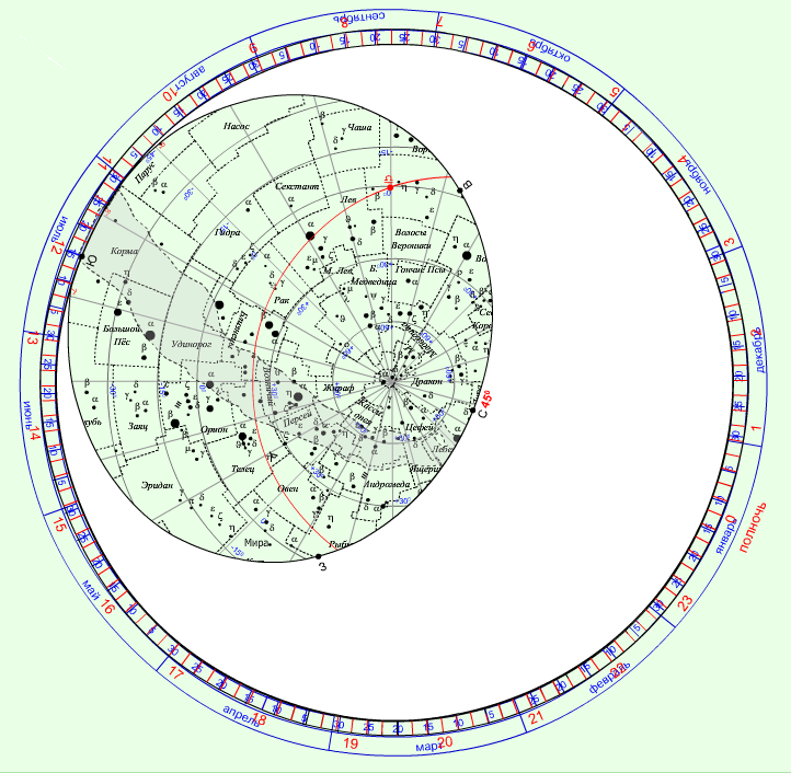 A) rasm. 1 – sentyabrga o‘tar kechasi soat 00:00 dagi osmon sferasining ko‘rinishi |