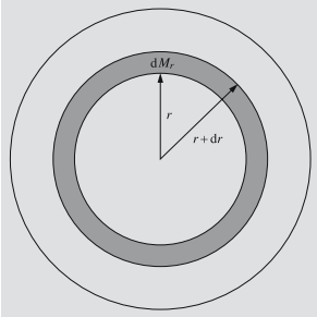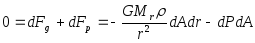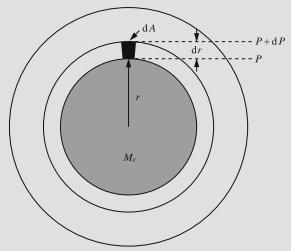 bo‘ladi, bu erda G – gravitatsion doimiy. Ushbu ifodadagi minus ishorasi kuch yulduz markaziga yo‘nalganligini bildiradi. Agar hajm birligidagi tag sirtida bosim R, yuqori sirtida P + dP bo‘lsa, unda elementga ta’sir etayotgan jami kuch