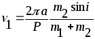 Uni (6.48) ga olib qo‘yib, mos ravishda m2 sin3i hamda m1 sin3i lari aniqlanishi mumkin. Bunda orbitaning qiyaligi ma’lum bo‘lsa ham, haqiqiy massalarini aniqlab bo‘lmaydi.