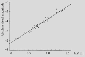 6.20-rasm Cepheidlar uchun davr-yorqinlik bog'lanishi |