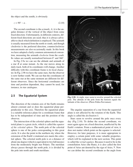 Osmondagi obyektlarning joylashishi va o‘zgarishi turli xilda sodir bo’ladi. Masalan, yulduzlarning o‘zaro joylashishi juda sekinlik bilan o‘zgarib, maxsus o‘lchashlarsiz, oddiy kuzatishlar asosida bunday o‘zgarishlarni bir necha o‘n, hatto yuz yillardan keyin ham sezib bo‘lmaydi. Bunday hol Yer sirtida yulduzlarga qarab orientir olish uchun juda qo‘l keladi. Shu sabali, juda qadim zamonlardayoq sayyohlar bundan keng foydalanganlar (buni "yulduz kompas"lari ham deb ataganlar).