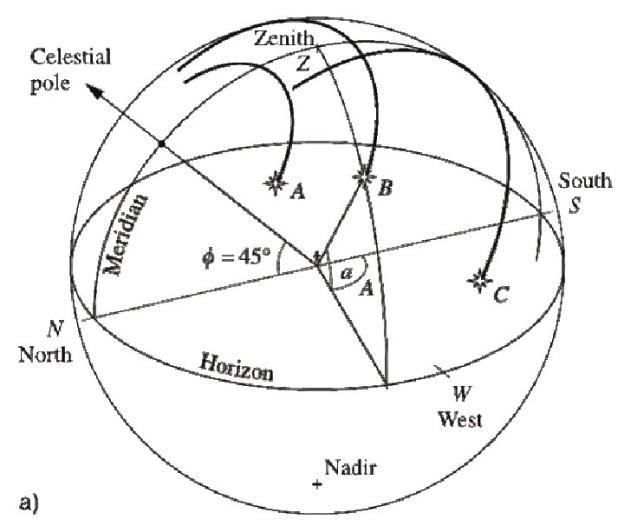1.5-rasm. Gorizontal koordinatalarni tushuntirish |