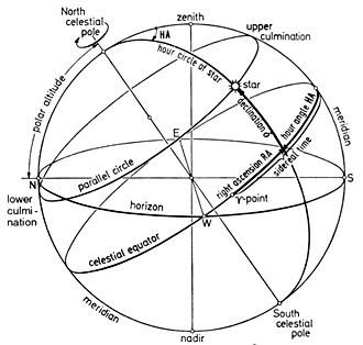 Qadimda Koinot chegaralangan sferik qobiq doirasida o’rganilgan bo’lib, yulduzlar shu qobiq yuzasida joylashgan deb hisoblangan hamda bu sistema markazida Yer bo’lgan. Bu sodda model qadimdagi singari haligacha ko’p holatlarda foydali hisoblanadi. Masalan, yulduzlarning sutkalik va yillik harakatlarini o’rganishda, biz yulduzlarni sfera yuzasida joylashgan va uning markazida kuzatuvchining ko’zi o’rin olgan deb hisoblaymiz . Bunday osmon sferasining radiusi ixtiyoriy bo’lib, kuzatuvchining joyi, Yerning orbital hamda o’z o’qi atrofida aylanishi bilan bog’liq o’zgarishlarni hisobga olmasa ham bo’ladi. Yulduzlargacha bo’lgan masofa hisobga olinmaydi, ya’ni ularni sfera sirtidagi o’rnini aniqlash uchun bizga ikkita koordinata yetarli. Har qanaqa koordinatalar sistemasi osmon sferaning markazidan o'tuvchi va uni katta aylana bo'yicha ikkita yarimsferaga bo'luvchi tayanch tekislikni talab etadi. Koordinatalardan biri tayanch tekislikka nisbatan burchak masofani belgilaydi. Bu erda obyektdan o'tib, ushbu tekislikni perpendikulyar ravishda kesib o'tadigan aniq bitta katta aylana mavjud; ikkinchi koordinata kesishish nuqtasi va ma'lum bir tanlangan yo'nalish orasidagi burchakni beradi. Yoritgichlarning ko‘rinma vaziyatlari va harakatlarini o‘rganishdan oldin ayrim tushunchalar hamda osmonning asosiy nuqta, chiziq va aylanalari bilan tanishishga to‘g‘ri keladi.