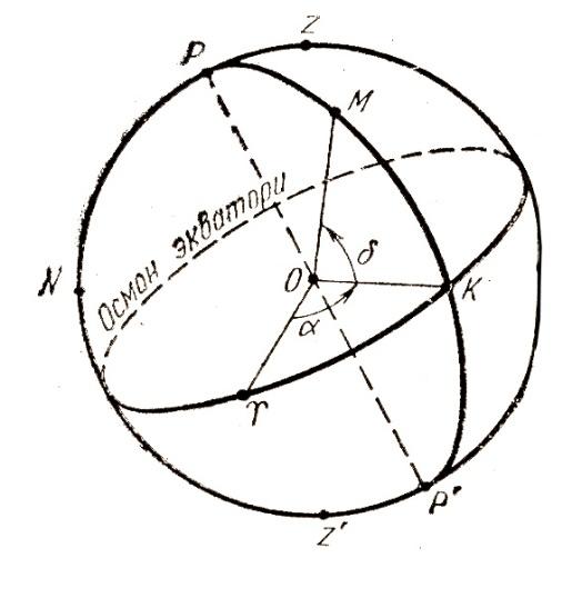 1.7-rasm. Ekvatorial koordinatalar 1-sistemasi |
