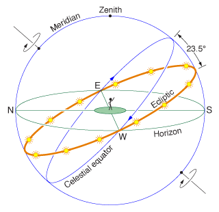 Yulduzlarga nisbatan Quyoshning g‘arbdan sharqqa tomon siljishi qadim zamondan ma’lum. Bu siljish har sutkada sal kam 10 bo‘lib, bir yilda Quyosh osmon sferasining zodiak yulduz turkumlari oralab bir marta to‘la aylanib chiqadi.