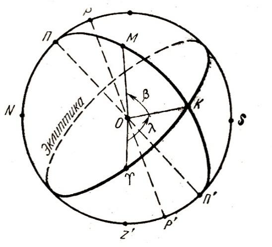 1.12-rasm. Ekliptik koordinatalar sistemasi |