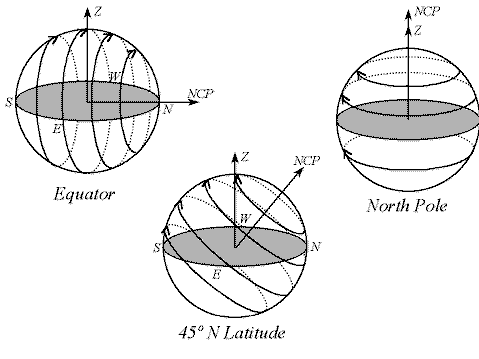 Yerning o‘z o‘qi atrofida aylanishining natijasi osmon sferasining sutkalik ko‘rinma aylanishi sodir bo‘lganidan, turli geografik kenglamalarda yoritkichlarining ko‘rinma aylanishi turlicha bo‘ladi. Turli xil geografik kenglamada osmon sferasi aylanishini o‘rganish bu hodisaning turli kenglamalarda qanday kechishi haqida etarlicha tushunib olishimizga yordam beradi.