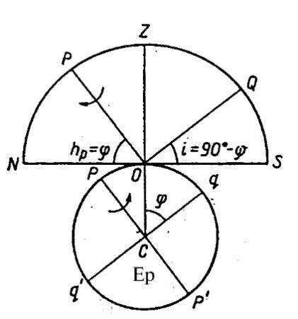 1.9-rasm. Olam qutbuning gorizontdan balandligi |