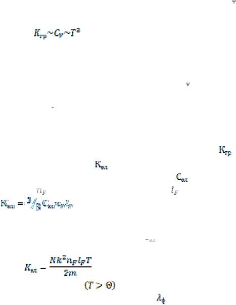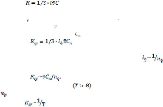 (thermal conductivity) обумовлена дифузією фононового газу з більш нагрітих об’ємів гратки, де його концентрація nф вища, в менш нагріті, де вона нижча. Тому для коефіцієнта теплопровідності гратки Кгр як теплопровідності фонноного газу можна скористатися виразом, який дає кінетична теорія для коефіцієнта теплопровідності звичайного газу: