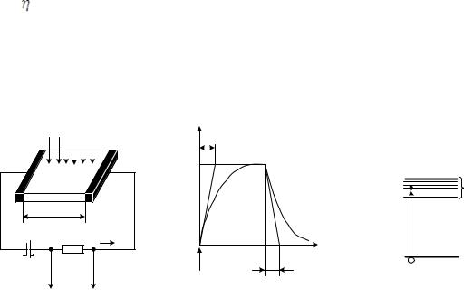омічними контактами. Він під'єднується до джерела зсуву V0 через опір навантаження Rп . Товщина чутливого елементу повинна бути достатньо великою, щоб в ньому поглиналося практично все світло W0 (1- r), що пройшло через освітлену поверхню (W0 – потужність падаючого світла;