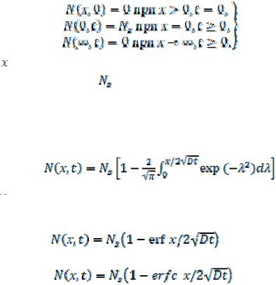 При цьому передбачається, що температура дифузійного процесу і, отже, значення коефіцієнта дифузії D , дуже залежного від температури, залишаються незмінними. Проте якщо концентрація дифундуючої домішки достатньо велика, то коефіцієнт дифузії також залежить від неї, що необхідно враховувати при розв’язанні рівняння (9.7).
