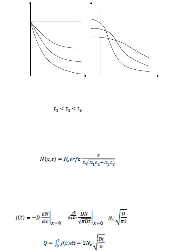 З формули (9.11) виходить, що розподіл домішки визначається її приповерхневою концентрацією Ns , коефіцієнтом дифузії D і часом