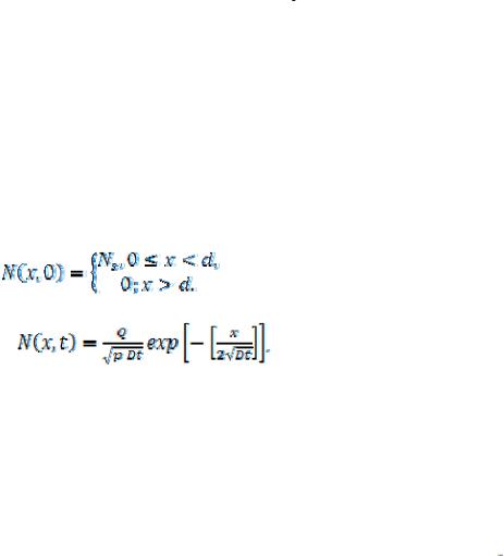 За цих умов розв’язання рівняння другого закону Фіка має вигляд