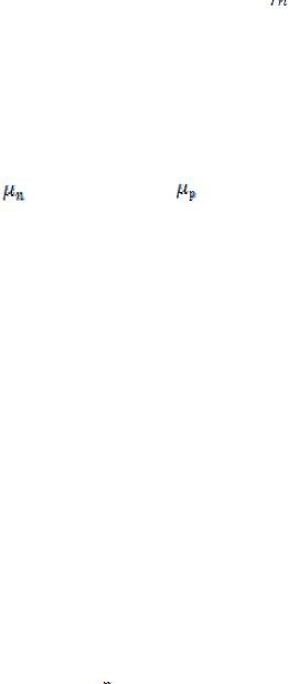 носіїв заряду в областях: Lp = 2 10−4 м; Lп = 3 10−4 м, відносна діелектрична проникність матеріалу ε =16 , власна концентрація носіїв заряду пі =1019 м−3 . Визначити для температури Т = 300К: а) концетрації для основних і неосновних носіїв заряду; б) питому провідність р- і п-областей;