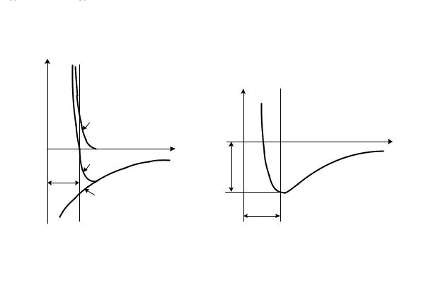 Рисунок 2.1 – Залежністьсиливзаємодії(а) іпотенціальноїенергіївзаємодії атомів(б) відвідстаніміжними