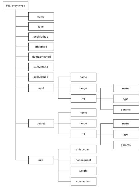 Система нечіткого логічного виведення представляється в робочій областіMatLab у вигляді структури даних, зображеної на рис. 2.