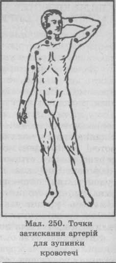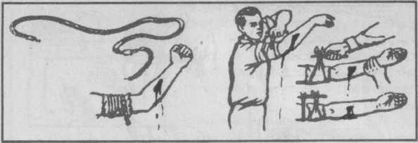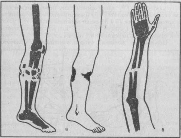 Мал. 266. Переломи кісток: а — відкритий (гомілки); б — закритий (передпліччя)