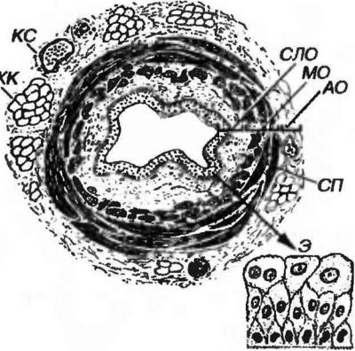 3.Адвентициальная оболочка - представлена тонким слоем волокнистой соединительной ткани.