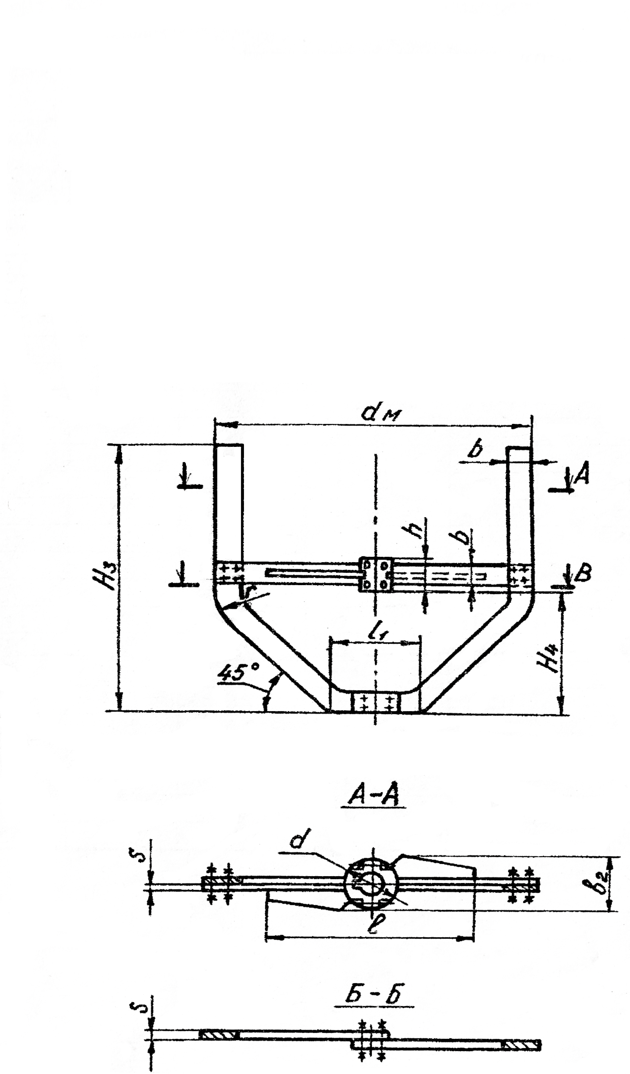 Размер опоры-лап выбирается в зависимости от внутреннего диаметра корпуса аппарата в соответствии с ГОСТ 26-665-72.