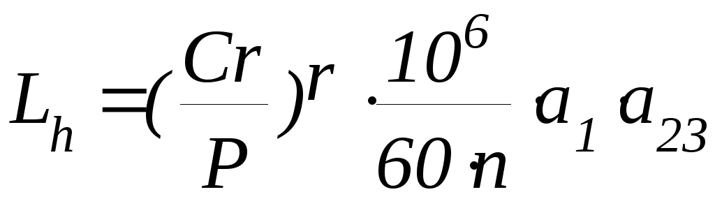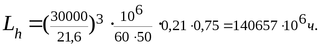 Этот подшипник воспринимает только осевую нагрузку. У него: r=3, х=0 и у=1,0; Fa=3217H; Kt=1; Crа=65000; n=50 об/мин; Kб =1,2;